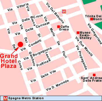 El Grand Hotel Plaza es uno de los mas antiguos y prestigiosos hoteles de Roma. Esta localizado en el corazon del centro historico de la ciudad, solamente a unos pasos de "Trinita' dei Monti," mas conocida como las "Escaleras Españolas", donde los comercios mas elegantes estan localizados. |